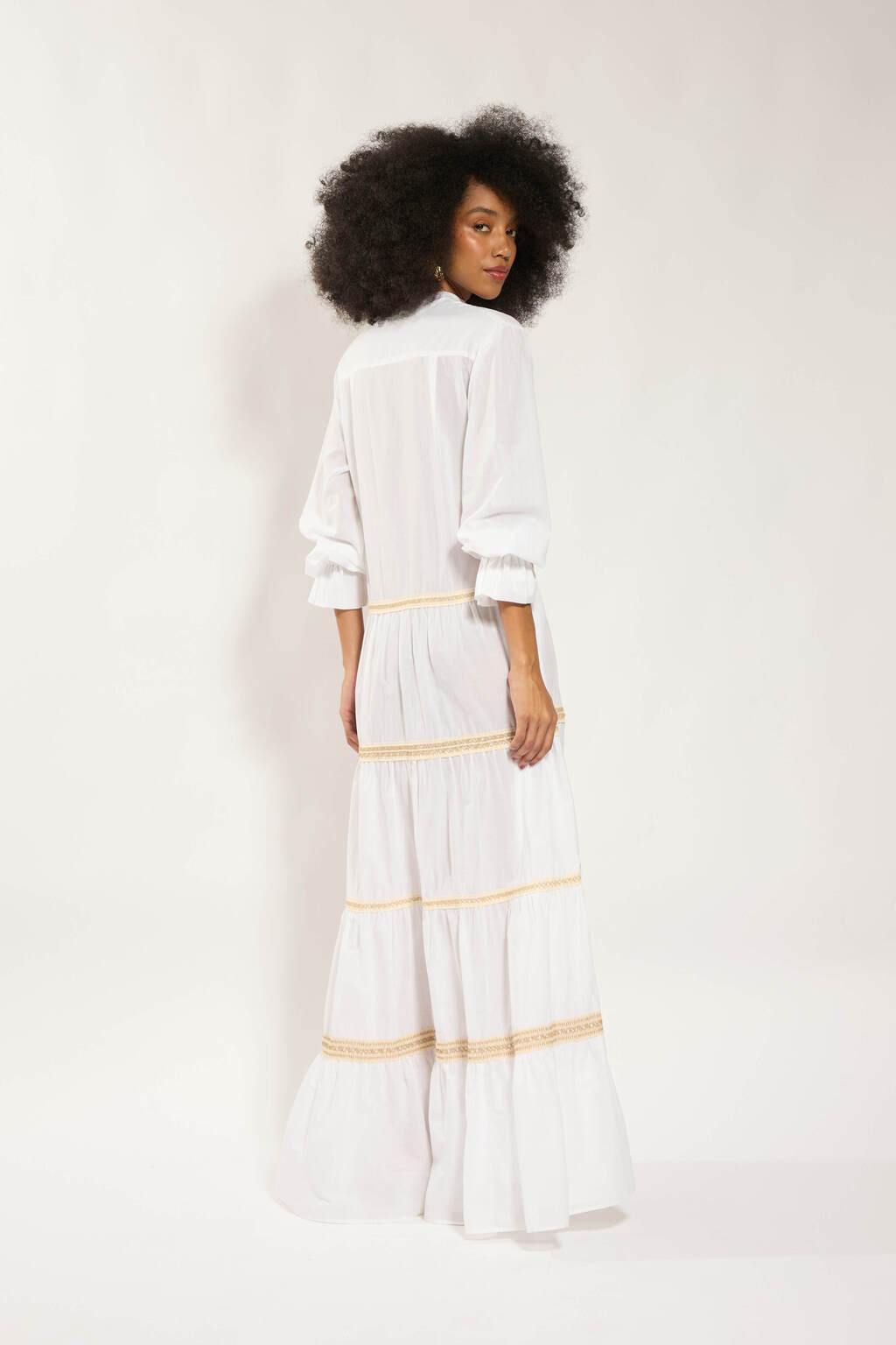 Seja o centro das atenções com essa peça que une design exclusivo e autenticidade. Renove seu guarda-roupa com o Vestido Longo Voil Entremeios com Manga Bufante e sinta-se única, confiante e deslumbrante em qualquer ocasião!